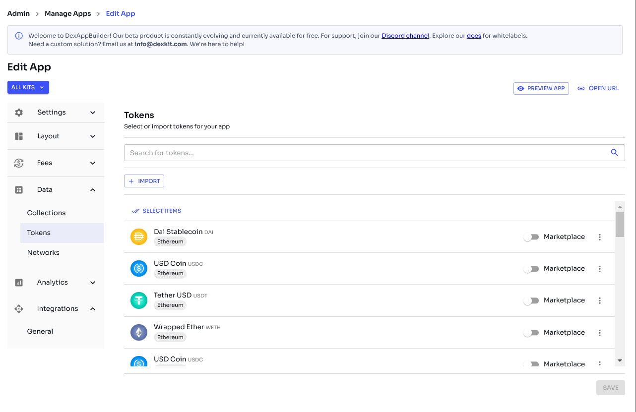 Clique no token desejado na lista suspensa ou simplesmente ative-o clicando no interruptor azul à direita do token
