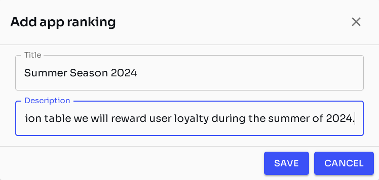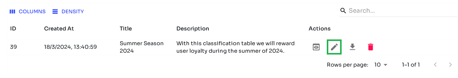 No caso deste exemplo, criamos um leaderboard chamado “Summer Season 2024” no qual colocaremos um conjunto de regras gamificadas (ou ações) que recompensarão os usuários que as cumprirem. A seguir, resumimos as regras que usaremos para esta tabela. Para acessar a configuração da tabela, clique no ![](https://1903426557-files.gitbook.io/~/files/v0/b/gitbook-x-prod.appspot.com/o/spaces%2FWrjgYUyO4ch1fBehrMEq%2Fuploads%2FB5Uu8rtf70tiUeJYS4Y2%2Fimagen.png?alt=media\&token=793e2497-59b8-4bb2-8c18-55255b8ebec1) botão no final da linha.&#x20;