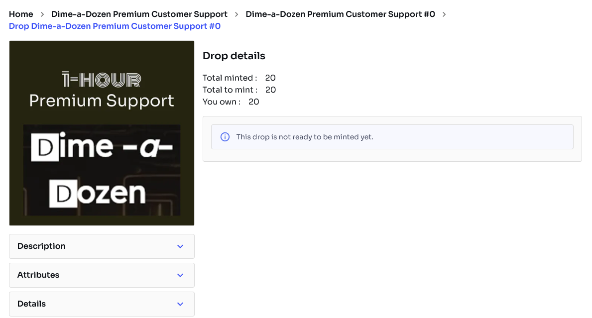 * Ver drop de NFT: Aqui você poderá verificar estatísticas detalhadas sobre este drop específico de NFT como quantidade total, total cunhado por usuários e total restante para cunhar