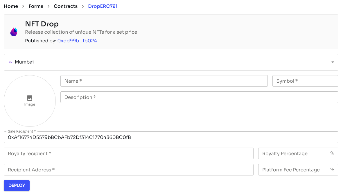 {% embed url="<https://dexappbuilder.dexkit.com/forms/deploy/thirdweb/DropERC721>" %}