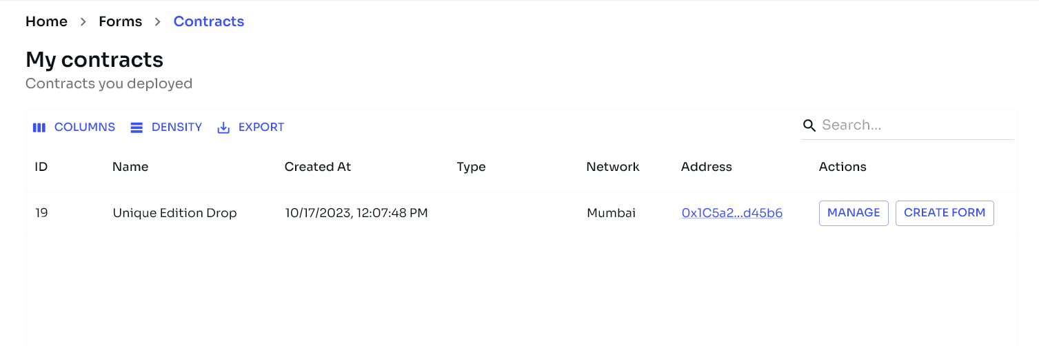 Uma vez que você minerou seus NFTs, o painel do seu contrato deve ficar assim: